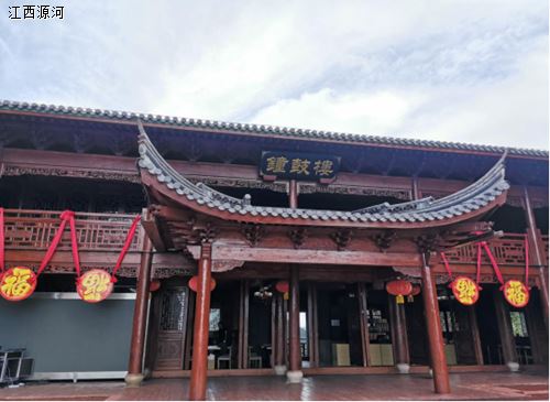 接下来来到了钟鼓楼,钟鼓楼是对称的建筑,二楼有一个福鼓亭,一个福钟亭。从钟鼓楼可以看到羊狮幕的奇峰之一:姐妹峰。两峰相依,形式姐妹相依而得名。从峡谷深处拔地而起,蔚然并立于天地间。还好天气不错可以看得清,下雨估计两姐妹就害羞的在云雾里若隐若现了。