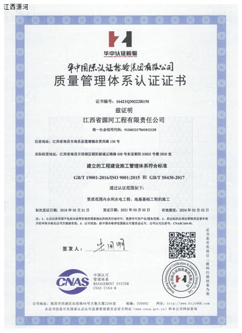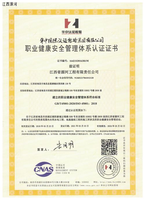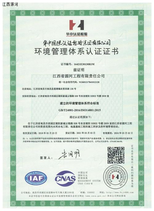 3月11日,华中国际认证检验集团有限公司为我司颁发了新的职业健康安全管理体系认证证书、环境管理体系认证证书、质量管理体系认证证书。