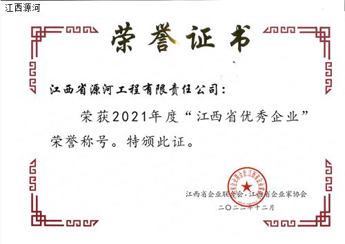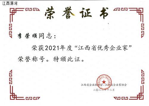 2023年2月20日上午,江西省企业联合会、江西省企业家协会颁发了2021年度江西省优秀企业、江西省优秀企业家的荣誉证书。我公司荣获2021年度江西省优秀企业称号;董事长李荣顺同志荣获2021年度江西省优秀企业家称号。